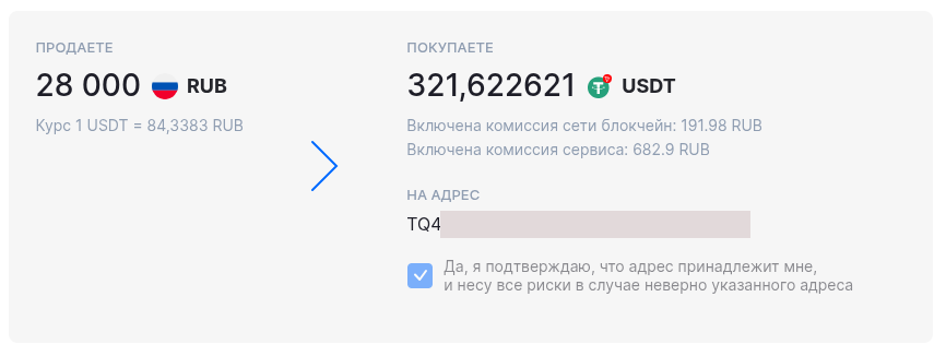 - Создаём заявку на обмен. Учтите, что по правилам обменника это должен быть именно Ваш кошелёк как получателя (не третьего лица). Для стран ЕС это может быть какая-нибудь криптобиржа вроде Kraken или крипто-финтехи вроде Wirex, у которых помимо SEPA есть крипто-карта и даже VIP обслуживание при переводе от $100k (у Юлии Свидерской есть все контакты). В любом случае, это зависит от географии и Ваших личных предпочтений.